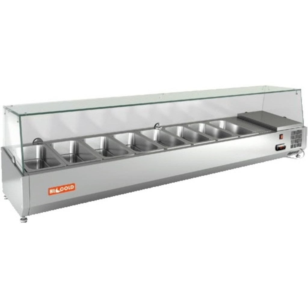 Каталог оборудования Холодильное оборудованиеВитрины для ингредиентовВитрина холодильная для ингредиентов HICOLD VRTG 1835 1/4 Витрина холодильная для ингредиентов HICOLD VRTG 1835 1/4 Код товара: 064-454 Поделиться: WhatsAppTelegram СравнитьДобавить в КПВ избранное 0 68 031 ₽ В корзину 0 шт Под заказСамовывоз сегодня бесплатно Взять в кредит Купить в лизинг Получить консультацию в WhatsApp Описание Характеристики Отзывы 0 Инструкции 2 Витрина холодильная для ингредиентов HICOLD VRTG 1835 1/4 предназначена для охлаждения, кратковременного хранения и наглядной демонстрации ингредиентов, салатов и готовых блюд на предприятиях общественного питания и в торговых точках. Гастроёмкости в комплект не входят, приобретаются отдельно. Основные особенности: Корпус выполнен из нержавеющей стали, обеспечивая долговечность и легкость в уходе; Электронная панель управления для точной настройки температуры; Модель с надстройкой из стекла (исполнение G) для удобной демонстрации продуктов; Высота витрины — 225 мм, высота стеклянной надстройки — 205 мм; Вместимость: 8 гастроёмкостей GN1/4; Опорные ножки для устойчивой установки на столешнице. HICOLD VRTG 1835 1/4 — компактная и функциональная настольная витрина, идеально подходящая для демонстрации и кратковременного хранения продуктов на профессиональной кухне или в торговой зоне. Изображение товара, представленного на фото, может отличаться от его фактического вида. Показать все Габаритные размеры1835×325×459 ммДиапазон рабочей температурыот +2 до +7 °CДлина1835 ммГлубина325 ммВысота459 ммТип крышкиСтеклянная Гастроемкостей8 штТип гастроемкостейGN1/4 Мощность150 ВтНапряжение220 ВТип охлажденияСтатическое Материал изготовленияНержавеющая сталь ХладагентR134 Мощность0,15 кВтВес нетто 55 кгВес брутто102 кгТип оттайкиРучная Габариты в упаковке2030×590×550 ммБрендHicold Оставить отзыв Еще никто не оставил отзыв на этот товар Инструкция на HICOLD VRTG 1835.pdfДекларация о соответствии.pdf Похожие товары Перейти в каталог Под заказ 53 040 ₽ Витрина холодильная для ингредиентов TEFCOLD VK33-180 С этим товаром покупают В наличии 83 719 ₽ Шкаф холодильный МХМ Капри 0,7М Ранее просмотрено Под заказ 54 207 ₽ Витрина холодильная для ингредиентов HICOLD VRTU 1425 1/3