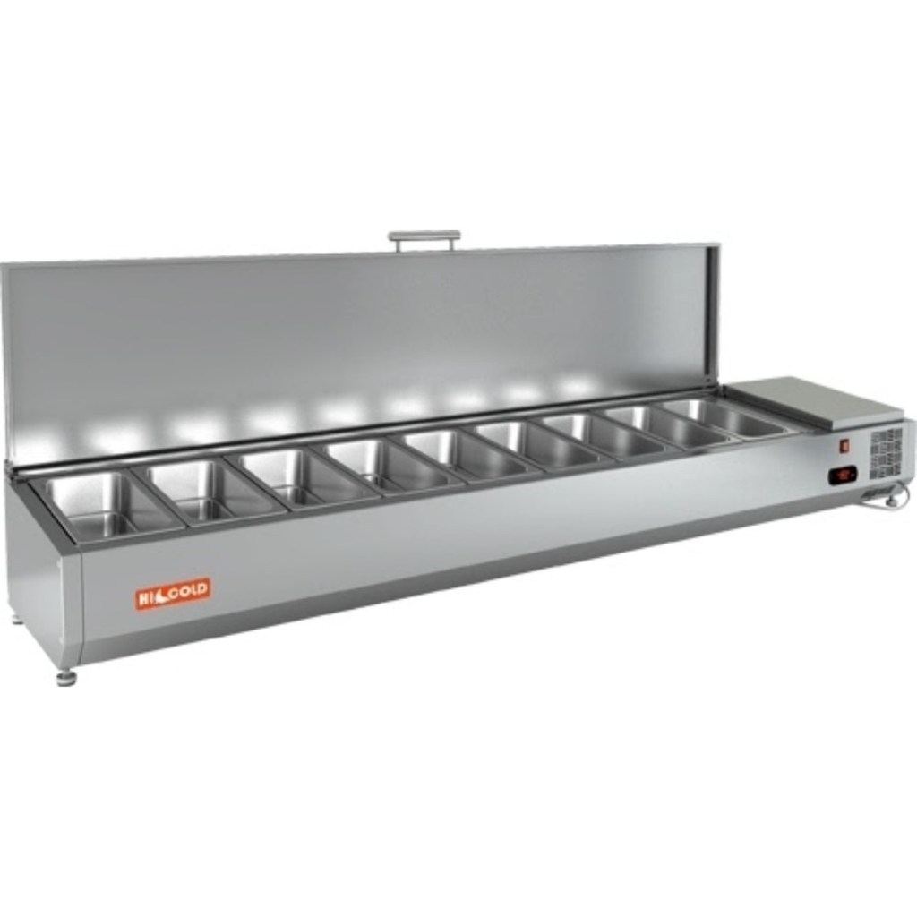 Каталог оборудования Холодильное оборудованиеВитрины для ингредиентовВитрина холодильная для ингредиентов HICOLD VRTU 1970 к PZE3 (1/3) Витрина холодильная для ингредиентов HICOLD VRTU 1970 к PZE3 (1/3) Код товара: 064-669 Поделиться: WhatsAppTelegram СравнитьДобавить в КПВ избранное 0 60 525 ₽ В корзину 0 шт Под заказСамовывоз сегодня бесплатно Взять в кредит Купить в лизинг Получить консультацию в WhatsApp Описание Характеристики Отзывы 0 Инструкции 3 Витрина холодильная для ингредиентов HICOLD VRTU 1970 к PZE3 (1/3) используется для охлаждения, кратковременного хранения и удобной демонстрации ингредиентов, салатов и готовых блюд на предприятиях общественного питания и торговли. Устанавливается на холодильные столы для пиццы серии PZE3 благодаря предусмотренным креплениям в нижней части корпуса. На фото показана аналогичная модель с настольной установкой. Ключевые особенности: Корпус из нержавеющей стали — прочность и лёгкость в обслуживании. Электронная панель управления — точный контроль температуры. Исполнение U — оснащена крышкой для защиты продуктов. Высота витрины — 279 мм — компактность при сохранении вместимости. Вместимость: 9xGN1/3 — оптимальная организация хранения (гастроёмкости приобретаются отдельно). Совместимые модели столов: PZE3-1111/SN, PZE3-1111/GN HICOLD VRTU 1970 к PZE3 (1/3) — профессиональная настольная витрина, сочетающая компактные размеры, современное управление и надёжную защиту ингредиентов. Отлично подходит для пиццерий, ресторанов и кафе, где важны скорость работы и сохранение свежести продуктов.Изображение товара, представленного на фото, может отличаться от его фактического вида. Показать все Габаритные размеры1970×385×279 ммДиапазон рабочей температурыот +2 до +7 °CДлина1970 ммГлубина385 ммВысота279 ммТип крышкиМеталлическая Гастроемкостей9 штТип гастроемкостейGN1/3 Напряжение220 ВТип охлажденияСтатическое Материал изготовленияНержавеющая сталь ХладагентR134 Мощность0,15 кВтВес нетто40 кгВес брутто85 кгТип оттайкиРучная Габариты в упаковке2160×550×580 ммБрендHicold Оставить отзыв Еще никто не оставил отзыв на этот товар Инструкция на HICOLD VRTU 1970 к PZE3.pdfСхема установки на витрину.jpgДекларация о соответствии.pdf Похожие товары Перейти в каталог Под заказ 101 613 ₽ Витрина холодильная для ингредиентов TEFCOLD VK33-180 С этим товаром покупают В наличии 99 023 ₽ Стол холодильный среднетемпературный Polair ТМ2GN-G В наличии 40 926 ₽ Льдогенератор Cooleq BF-30 (пальчики) В наличии 68 097 ₽ Шкаф холодильный Polair СМ 105-S Ранее просмотрено Под заказ 110 063 ₽ Дверь холодильная распашная двустворчатая СТ-РДД-2200*3000/80
