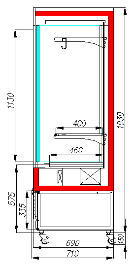 Размеры выкладки: глубина зоны — 460 мм, глубина полок — 400 мм.
