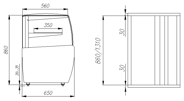 Боковые прямые и переднее гнутое стекло — стильный внешний вид и удобный обзор товаров.