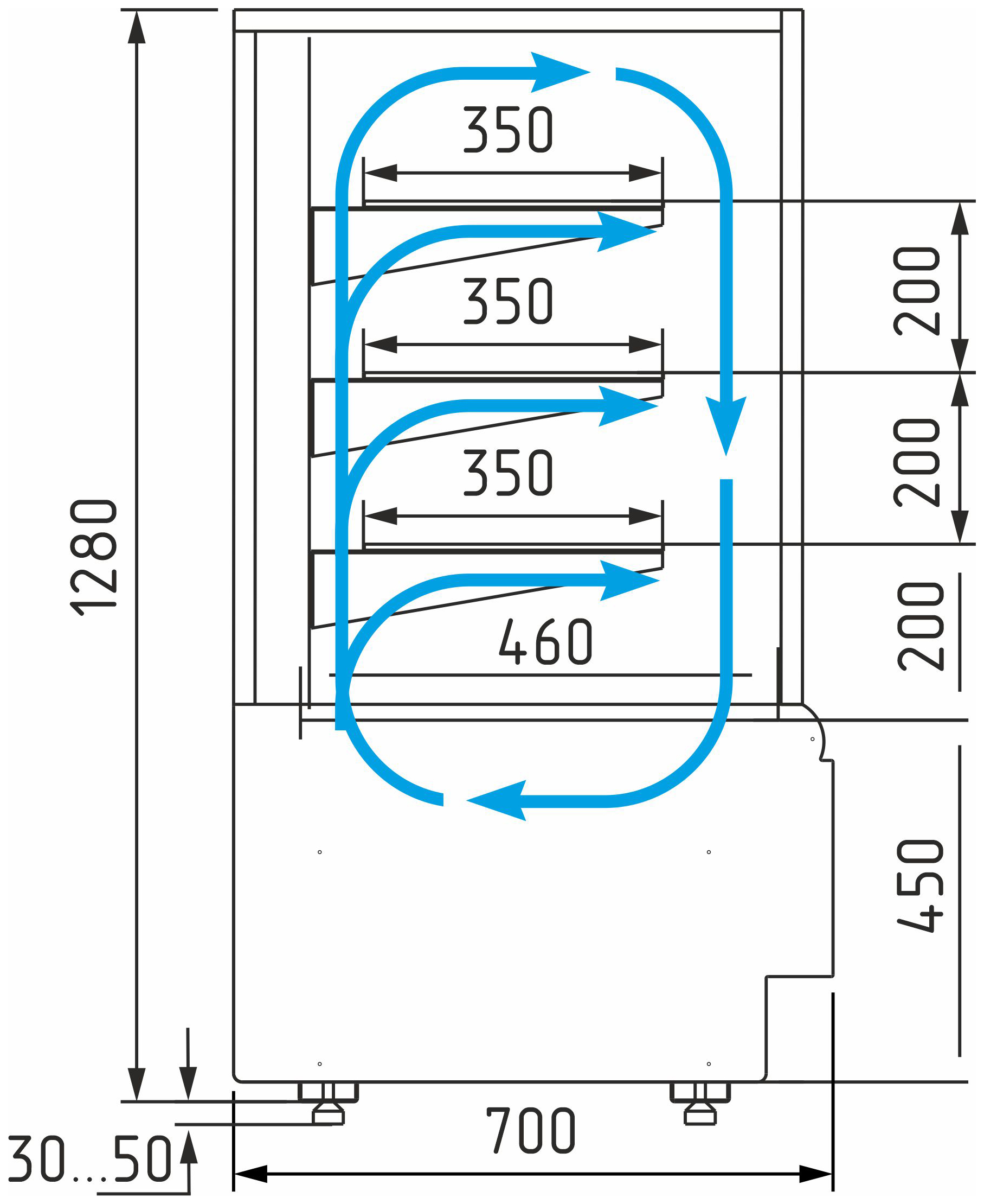 Максимальная высота выкладки продукции: до 150 мм – обеспечивает удобный обзор товаров покупателям.