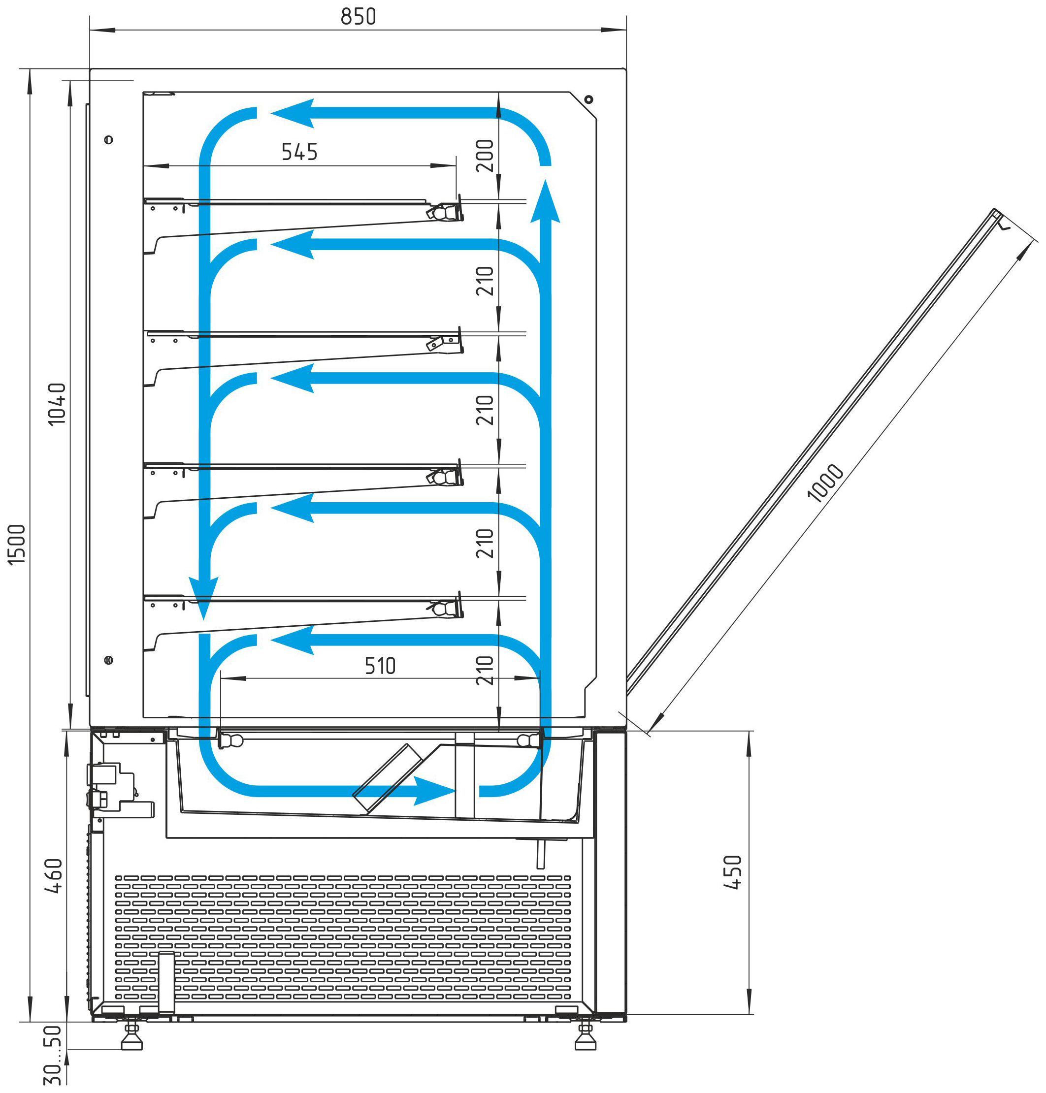 Витрина оснащена динамической системой охлаждения, которая обеспечивает равномерное распределение температуры по всей камере. Корпус из стали и пластика с пенополиуретановой изоляцией гарантирует высокую энергоэффективность и стабильные условия хранения.