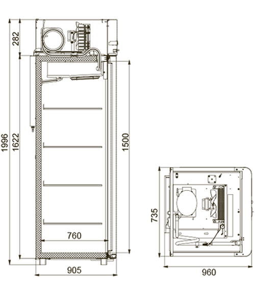 Каталог оборудования Холодильное оборудованиеШкафы холодильныеШкафы морозильные низкотемпературные до -18 °СШкаф морозильный Polair CB107-Sm Alu Шкаф морозильный Polair CB107-Sm Alu Код товара: 062-592 Поделиться: WhatsAppTelegram СравнитьДобавить в КПВ избранное 0 151 662 ₽ В корзину 0 шт Под заказСамовывоз сегодня бесплатно Взять в кредит Купить в лизинг Получить консультацию в WhatsApp Описание Характеристики Отзывы 0 Инструкции 4 Шкаф морозильный Polair CB107-Sm Alu предназначен для демонстрации и надежного хранения продуктов на предприятиях общественного питания и торговли. Цельнозаливной корпус выполнен из стали с полимерным покрытием и дополнен алюминиевыми профилями, что обеспечивает высокую механическую прочность и долговечность конструкции. Алюминиевые элементы дверей и верхней панели подчеркивают современный и премиальный дизайн. Шкаф стабильно работает при температуре окружающей среды до +40 °С и относительной влажности воздуха до 80%, сохраняя продукты в оптимальных условиях. Основные особенности: Электронный блок управления с жидкокристаллическим дисплеем Верхнее расположение агрегата, обеспечивающее удобный доступ к внутреннему объему Клапан Шредера для обслуживания системы охлаждения Компенсационный клапан с ПЭНом обогрева для предотвращения перепадов давления ПЭН обогрева трубки слива конденсата и ПЭН обогрева дверного проема для защиты от наледи Распашной тип дверей с возможностью изменения стороны открывания Интегрированные ручки, встроенные в алюминиевые профили дверей Эластичные уплотнители с магнитными вставками, обеспечивающие максимальную герметизацию Встроенная внутренняя подсветка для удобного обзора содержимого Микропереключатель, отключающий вентилятор и включающий подсветку при открытии двери Регулируемые по высоте ножки и педаль для открывания двери, повышающие эргономику использования Замок для безопасного хранения продукции 4 полки формата GN 2/1 (530×650 мм) с допустимой нагрузкой до 40 кг Толщина теплоизоляции корпуса — 61 мм Изображение товара, представленного на фото, может отличаться от его фактического вида. Показать все Габаритные размеры735×945×1996 ммДиапазон рабочей температурыдо -18 °CДлина735 ммГлубина450 ммВысота1996 ммОбъём700 лМатериал корпусаНержавеющая сталь Тип управленияМеханическое Расход электроэнергии в сутки12 кВтКоличество полок2 штКоличество дверей1 штЗамокЕсть Тип двериМеталлическая Способ открыванияРаздвижные (купе) Напряжение220 ВХладагентR290 Расположение агрегатаНижнее Габариты в упаковке850×988×2160 ммВес нетто128 кгВес брутто152 кгБрендPolair Оставить отзыв Еще никто не оставил отзыв на этот товар Схема POLAIR CB107-Sm.jpgИнструкция на POLAIR CB107-Sm.pdfСертификат соответствия.pdfДекларация о соответствии.pdf Похожие товары Перейти в каталог Под заказ 139 830 ₽ Шкаф морозильный Ангара 1000 М В наличии 43 092 ₽ Шкаф морозильный с глухой дверью Haier HF-82WAA В наличии 243 456 ₽ Шкаф морозильный с глухой дверью TEFCOLD GUF70 нержавеющий Под заказ 123 026 ₽ Шкаф морозильный Abat ШХн-0,5 Под заказ 213 194 ₽ Шкаф морозильный Полюс Carboma F1400 INOX Под заказ 207 231 ₽ Шкаф морозильный Abat ШХн-1,4 Под заказ 65 713 ₽ Шкаф морозильный для икры и пресервов МХМ ШХН 0,06С Под заказ 204 812 ₽ Шкаф морозильный Abat ШХн-1,4-02 С этим товаром покупают Под заказ 109 740 ₽ Витрина холодильная Ангара 2 КУБ 1,8 динамика Под заказ 113 734 ₽ Витрина холодильная Carboma GC110 SV 1,25-1 (ВХСр-1,25 Carboma GC 110)(1005 вен
