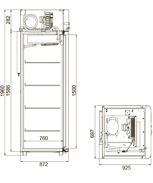 Каталог оборудования Холодильное оборудованиеШкафы холодильныеШкафы холодильные универсальные от -5 до +5 °СШкаф холодильный универсальный Polair CV107-Sm Alu Шкаф холодильный универсальный Polair CV107-Sm Alu Код товара: 062-611 Поделиться: WhatsAppTelegram СравнитьДобавить в КПВ избранное 0 129 370 ₽ В корзину 0 шт Под заказСамовывоз сегодня бесплатно Взять в кредит Купить в лизинг Получить консультацию в WhatsApp Описание Характеристики Отзывы 0 Инструкции 4 Шкаф холодильный универсальный Polair CV107-Sm Alu предназначен для демонстрации и надежного хранения продуктов на предприятиях общественного питания и торговли. Цельнозаливной корпус выполнен из стали с полимерным покрытием и оснащен алюминиевыми профилями, что обеспечивает высокую прочность конструкции и долговечность, а также подчеркивает современный премиальный дизайн. Шкаф работает при температуре окружающей среды до 40 °С и влажности воздуха до 80%. Особенности модели: Контрольная панель с быстрым доступом к настройкам, удобным возвратом в предыдущее меню и возможностью полного отключения без отдельной кнопки. Жидкокристаллический дисплей для наглядного отображения параметров. Клапан Шредера для обслуживания холодильной системы. Компенсационный клапан с ПЭНом обогрева, ПЭНы обогрева трубки слива конденсата и дверного проема — предотвращают образование льда и обеспечивают надежную работу. Распашной тип двери с возможностью изменения стороны открывания, что делает установку более гибкой. Полностью интегрированные ручки, удобные и стильные. Эластичные уплотнители с магнитными вставками для максимальной герметизации. Внутренняя подсветка вынесена на нижнюю часть фронтальной панели. Микропереключатель для автоматического отключения вентилятора и включения подсветки при открытии дверей. Регулируемые по высоте ножки для устойчивости на любом полу. Педаль для удобного открывания без рук. Замок для защиты содержимого. Высокая допустимая нагрузка на полку — до 40 кг. Размер полки: GN 2/1 (530×650 мм). Толщина стенки корпуса — 43 мм, что обеспечивает отличную теплоизоляцию. Polair CV107-Sm Alu — это функциональный и надежный холодильный шкаф с современным дизайном, который обеспечивает максимальную сохранность и удобный доступ к продуктам. Отлично подходит для ресторанов, кафе и магазинов, где важны надежность, стиль и энергоэффективность.Изображение товара, представленного на фото, может отличаться от его фактического вида. Показать все Габаритные размеры697×925×1960 ммДиапазон рабочей температурыот -5 до +5 °CДлина697 ммГлубина925 ммВысота1960 ммОбъём700 лРазмер полки530×650 ммКоличество полок4 штКоличество дверей1 штТип оттайкиАвтоматическая Тип охлажденияДинамическое Тип управленияЭлектронное Материал корпусаНержавеющая сталь Тип двериМеталлическая ЗамокЕсть Способ открыванияРаспашные ХладагентR290 Холодильный агрегатВстроенный Расположение агрегатаВерхнее Потребление электроэнергии в сутки4,5 кВтПотребляемая мощность0,4 кВтНапряжение220 ВГабариты в упаковке800×1000×2150 ммВес нетто113 кгВес брутто138 кгБрендPolairВсе шкафы холодильные универсальные от -5 до +5 °С Из нержавейки Оставить отзыв Еще никто не оставил отзыв на этот товар Схема POLAIR CV107-Sm.jpgИнструкция на POLAIR CV107-Sm.pdfДекларация о соответствии.pdfСертификат соответствия.pdf Похожие товары Перейти в каталог В наличии 114 603 ₽ Шкаф холодильный универсальный МХМ