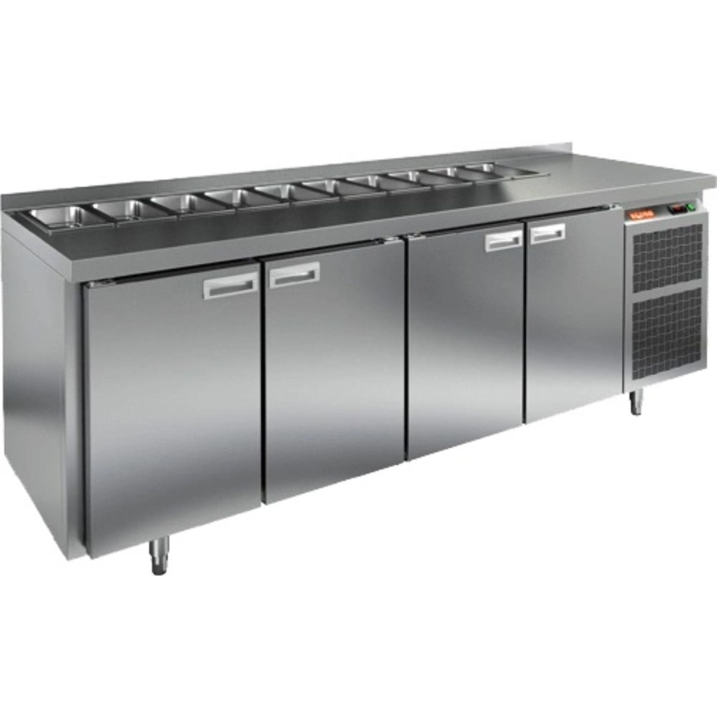 Каталог оборудования Холодильное оборудованиеСтолы охлаждаемыеСтолы холодильные для салатовСтол холодильный для салатов HiCold SL1-1111GN (1/3) без крышки Стол холодильный для салатов HiCold SL1-1111GN (1/3) без крышки Код товара: 064-512 Поделиться: WhatsAppTelegram СравнитьДобавить в КПВ избранное 0 192 411 ₽ В корзину 0 шт Под заказСамовывоз сегодня бесплатно Взять в кредит Купить в лизинг Получить консультацию в WhatsApp Описание Характеристики Отзывы 0 Инструкции 2 Стол холодильный для салатов HiCold SL1-1111GN (1/3) без крышки предназначен для предприятий общественного питания и торговли. Он обеспечивает хранение и подготовку ингредиентов для пиццы, салатов и других блюд, а также охлаждение и кратковременное хранение скоропортящихся продуктов. Модель сочетает рабочую поверхность и холодильный объем, позволяя повару иметь все необходимые компоненты под рукой. Корпус и столешница выполнены из нержавеющей стали, обеспечивая надежность и долговечность. Особенности: Динамическая система охлаждения — равномерное распределение температуры внутри холодильного объема. Автоматическая оттайка — упрощает уход за оборудованием. Электронная панель управления — точная настройка температуры и режимов работы. 4 вместительные внутренние полки формата GN 1/1 — удобное хранение ингредиентов. Автоматические доводчики дверей с фиксатором открытого положения — комфорт и безопасность работы. Легкозаменяемые магнитные уплотнители — простота обслуживания. Открытая агрегатная часть — облегчает доступ для обслуживания. Регулируемые по высоте ножки — адаптация к рабочей поверхности. Столешница с бортом, толщина столешницы и теплоизоляции 50 мм — надежная защита и удобство работы. Размер полки: 530×325 мм (GN 1/1) Максимальная глубина гастроемкостей: 100 мм HiCold SL1-1111GN (1/3) без крышки — многофункциональный и надежный стол для профессиональной кухни. Обеспечивает удобство работы, эффективное охлаждение и безопасное хранение продуктов. Идеально подходит для ресторанов, кафе и пиццерий, где важны скорость работы и качество хранения ингредиентов.Изображение товара, представленного на фото, может отличаться от его фактического вида. Показать все Габаритные размеры2280×700×850 ммДиапазон рабочей температурыот +2 до +10 °CРасположение агрегатаБоковое Материал столешницыНержавеющая Тип столаС дверьми Тип двериГлухая Объём660 лКоличество дверей4 штТип гастроемкостейGN 1/3 Размер полки530×325 ммНапряжение220 ВМощность0,48 кВтТип охлажденияДинамический Тип оттайкиАвтоматическая СтолешницаС бортом Вес нетто145 кгВес брутто211 кгБрендHicold Оставить отзыв Еще никто не оставил отзыв на этот товар Паспорт на HICOLD SL1-1111GN.pdfДекларация о соответствии.pdf Ранее просмотрено Под заказ 163 162 ₽ Стол холодильный для салатов HiCold SL1-111SN (1/3) О без крышки