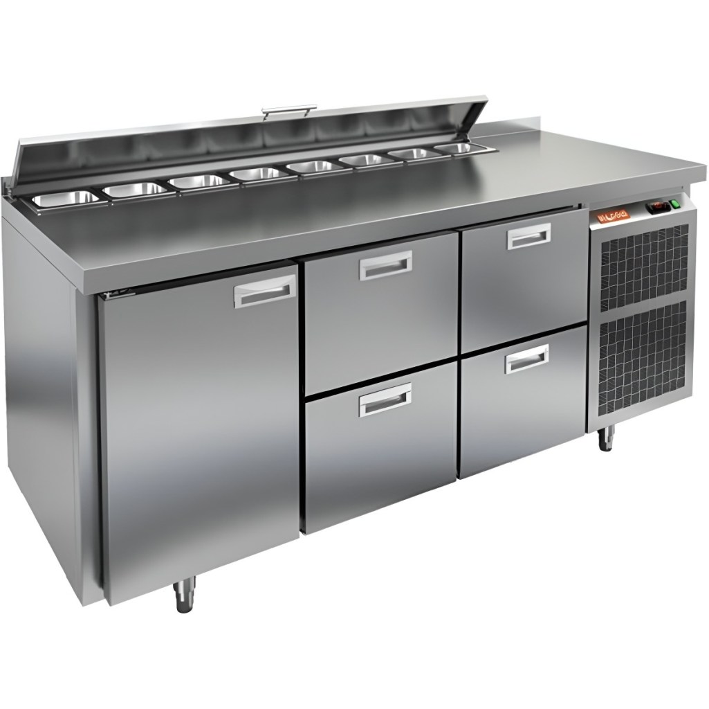 Каталог оборудования Холодильное оборудованиеСтолы охлаждаемыеСтолы холодильные для салатовСтол холодильный для салатов HiCold SL1-122GN (1/3) с крышкой Стол холодильный для салатов HiCold SL1-122GN (1/3) с крышкой Код товара: 064-843 Поделиться: WhatsAppTelegram СравнитьДобавить в КПВ избранное 0 229 492 ₽ В корзину 0 шт Под заказСамовывоз сегодня бесплатно Взять в кредит Купить в лизинг Получить консультацию в WhatsApp Описание Характеристики Отзывы 0 Инструкции 2 Стол холодильный для салатов HiCold SL1-122GN (1/3) предназначен для использования на предприятиях общественного питания и торговли. Он объединяет рабочую поверхность и охлаждаемый отсек, что делает его удобным решением для хранения, охлаждения и подготовки ингредиентов при приготовлении салатов, пиццы и других блюд. Такая конструкция позволяет повару работать быстрее и эффективнее, так как все необходимые продукты находятся под рукой. Корпус и столешница выполнены из прочной нержавеющей стали, устойчивой к коррозии и легко поддающейся санитарной обработке. Металлическая крышка защищает продукты от загрязнений и сохраняет их свежесть. Особенности модели: Электронная панель управления — точная настройка температурного режима. 1 глухая дверь — удобный доступ к холодильному отсеку. 4 выдвижных ящика — быстрое размещение и замена продуктов. Вместимость салат-бара — до 8 гастроемкостей глубиной до 100 мм. Автоматические доводчики дверей с фиксацией в открытом положении. Легкозаменяемые магнитные уплотнители — надежная герметичность. Открытая агрегатная часть — быстрый доступ для обслуживания. Регулируемые по высоте ножки — устойчивость даже на неровном полу. Толщина столешницы, борта и теплоизоляции — 50 мм, что обеспечивает прочность и энергоэффективность конструкции. HiCold SL1-122GN (1/3) — практичное и удобное решение для профессиональной кухни, обеспечивающее удобную подготовку и хранение ингредиентов.Изображение товара, представленного на фото, может отличаться от его фактического вида. Показать все Габаритные размеры1835×700×850 ммДиапазон рабочей температурыот +2 до +10 °CРасположение агрегатаБоковое Материал столешницыНержавеющая Тип столаС дверьми и ящиками Тип двериГлухая Объём505 лКоличество дверей1 штТип гастроемкостейGN 1/3 Количество ящиков4 штРазмер полки530×325 ммНапряжение220 ВМощность0,46 кВтТип охлажденияДинамическое Тип оттайкиАвтоматическая СтолешницаС бортом Вес нетто120 кгВес брутто140 кгБрендHicold Оставить отзыв Еще никто не оставил отзыв на этот товар Паспорт на HICOLD SL1-122GN.pdfДекларация о соответствии.pdf Ранее просмотрено Под заказ 124 191 ₽ Стол холодильный для салатов HiCold SLE1-11GN (1/3) О с крышкой Под заказ 320 122 ₽ Стол холодильный для салатов HiCold SL2-2222GN (1/6) с крышкой