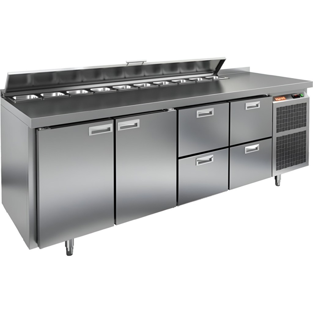 Стол холодильный для салатов HiCold SL2-1122SN (1/6) с крышкой предназначен для использования на предприятиях общественного питания и торговли. Он подходит для хранения, обработки и кратковременного охлаждения ингредиентов, применяемых при приготовлении пиццы, салатов, закусок и других блюд.