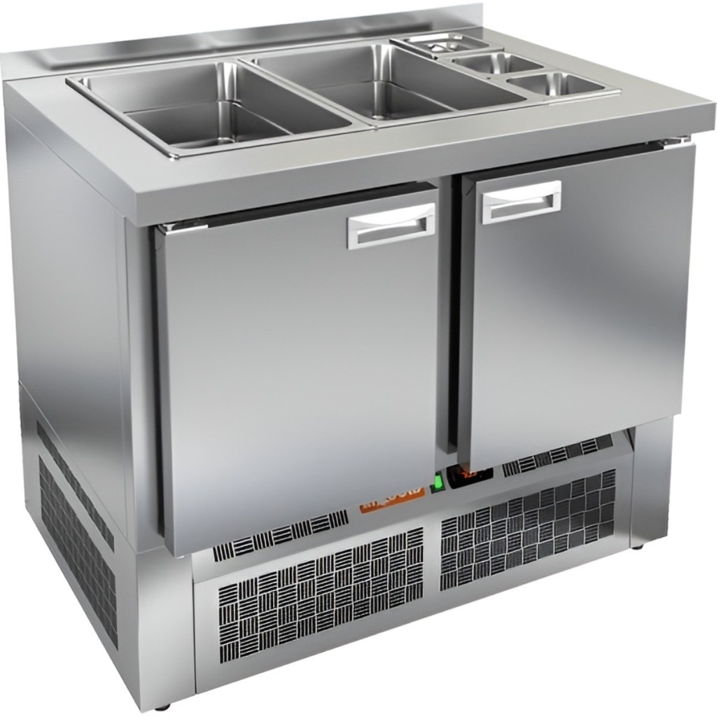 Каталог оборудования Холодильное оборудованиеСтолы охлаждаемыеСтолы холодильные для салатовСтол холодильный для салатов HiCold SLE3-11GN М без крышки Стол холодильный для салатов HiCold SLE3-11GN М без крышки Код товара: 064-937 Поделиться: WhatsAppTelegram СравнитьДобавить в КПВ избранное 0 140 661 ₽ В корзину 0 шт Под заказСамовывоз сегодня бесплатно Взять в кредит Купить в лизинг Получить консультацию в WhatsApp Описание Характеристики Отзывы 0 Инструкции 2 Стол холодильный для салатов HiCold SLE3-11GN М без крышки предназначен для охлаждения и кратковременного хранения продуктов, используемых при приготовлении салатов, закусок, сэндвичей и других блюд. Он идеально подходит для предприятий общественного питания и торговли, где требуется удобный доступ к охлаждённым ингредиентам. Модель сочетает в себе рабочую поверхность и охлаждаемый объём, что обеспечивает эффективную организацию кухонного пространства. Корпус и столешница изготовлены из нержавеющей стали, что гарантирует долговечность конструкции, устойчивость к коррозии и соответствие санитарным нормам. Особенности модели: Электронная панель управления — обеспечивает точный контроль температуры Две полки формата GN 1/1 — для удобного размещения ингредиентов Салат-бар вмещает 2 GN 1/1 и 3 GN 1/6 — для организации набора продуктов Автоматические доводчики дверей с фиксацией открытого положения Магнитные уплотнители — легко заменяются при износе Открытая агрегатная часть — упрощает обслуживание оборудования Модификация «М» — ножки заменены на колёса: два со стопором, два без — для удобного перемещения и надёжной фиксации стола. Глубина гастроемкостей — до 100 мм Толщина столешницы — 50 мм Толщина теплоизоляции — 50 мм HiCold SLE3-11GN М без крышки — функциональное решение для профессиональной кухни, позволяющее хранить ингредиенты в охлаждённом состоянии и всегда иметь их под рукой во время приготовления блюд. Изображение товара, представленного на фото, может отличаться от его фактического вида. Показать все Габаритные размеры1000×700×1315 ммДиапазон рабочей температурыот +2 до +10 °CРасположение агрегатаНижнее Материал столешницыНержавеющая Тип столаС дверьми Тип двериГлухая Объём245 лКоличество дверей2 штТип гастроемкостейGN 1/1, GN 1/6 Размер полки530×325 ммНапряжение220 ВМощность0,15 кВтТип охлажденияДинамическое Тип оттайкиАвтоматическая СтолешницаС бортом Вес нетто95 кгВес брутто140 кгБрендHicold Оставить отзыв Еще никто не оставил отзыв на этот товар Паспорт на HICOLD SLE3-11GN.pdfДекларация о соответствии.pdf Ранее просмотрено Под заказ 146 782 ₽ Стол холодильный для салатов HiCold SLE2-111SN (1/6) О с крышкой Под заказ 147 232 ₽ Стол холодильный для салатов HiCold SLE2-111GN (1/6) О с крышкой Под заказ 159 742 ₽ Стол холодильный для салатов HiCold SLE1-111GN (1/3) 3 замок Под заказ 15 990 ₽ Ванна моечная с бортом МХМ МБ-2-0,3-0,53/1,01 (AISI 430, t=0,6) Под заказ 121 491 ₽ Стол холодильный для салатов HiCold SLE2-11GN (1/6) без крышки Под заказ 179 362 ₽ Стол холодильный для салатов HiCold SLE3-22GN О без крышки Под заказ 146 332 ₽ Стол холодильный для салатов HiCold SLE2-11GN (1/6) М с крышкой