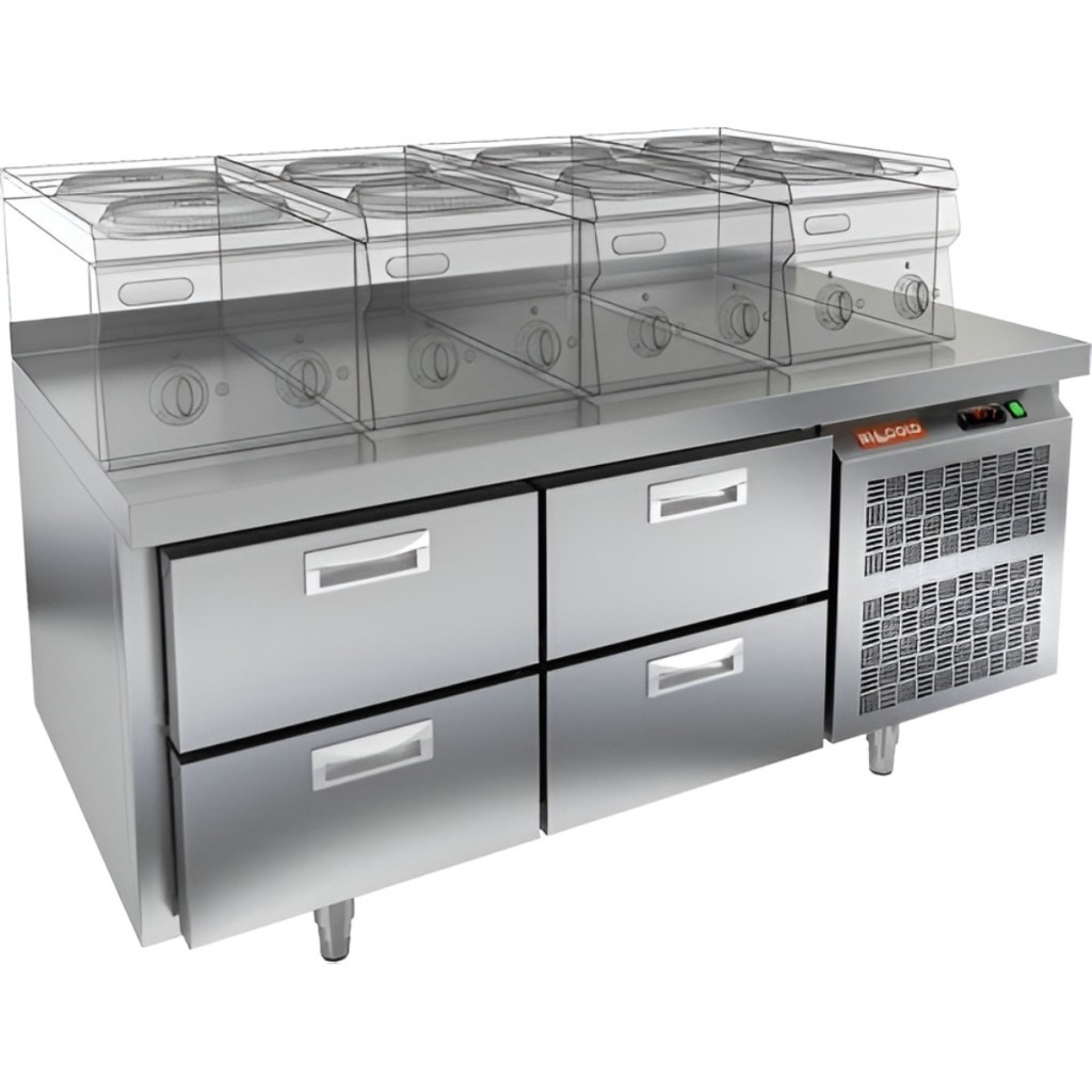 Каталог оборудования Холодильное оборудованиеСтолы охлаждаемыеСтолы холодильные под тепловое оборудованиеСтол охлаждаемый HiCold SN 22/TN LT SH под тепловое оборудование Стол охлаждаемый HiCold SN 22/TN LT SH под тепловое оборудование Код товара: 065-541 Поделиться: WhatsAppTelegram СравнитьДобавить в КПВ избранное 0 170 362 ₽ В корзину 0 шт Под заказСамовывоз сегодня бесплатно Взять в кредит Купить в лизинг Получить консультацию в WhatsApp Описание Характеристики Отзывы 0 Инструкции 2 Стол охлаждаемый HiCold SN 22/TN LT SH под тепловое оборудование предназначен для обработки ингредиентов и временного хранения скоропортящихся продуктов и напитков на предприятиях общественного питания и торговли. Устройство совмещает функции рабочей поверхности и холодильной камеры. Столешница рассчитана на установку теплового оборудования: под рабочей поверхностью встроен ДСП-лист, который укрепляет конструкцию и препятствует проникновению тепла внутрь. Такое решение обеспечивает дополнительную жесткость, позволяет рационально использовать рабочее пространство и повышает эффективность работы на кухне. Особенности: 4 выдвижных ящика — обеспечивают удобный доступ к продуктам и инвентарю Автоматические доводчики дверей с фиксатором открытого положения повышают эргономику и способствуют сохранению холода. Легкозаменяемые магнитные уплотнители обеспечивают плотное прилегание дверей и лёгкость в обслуживании. Открытая агрегатная часть упрощает доступ к компрессору при техническом обслуживании. Регулируемые по высоте низкие ножки — удобная установка и устойчивость стола даже на неровной поверхности. Толщина столешницы — 50 мм обеспечивает прочность рабочей поверхности. Высота борта — 50 мм предотвращает падение продуктов и инвентаря. Толщина теплоизоляции — 50 мм способствует энергоэффективности и стабильному температурному режиму. HiCold SN 22/TN LT SH — это надёжное и удобное оборудование, сочетающее охлаждение и рабочее пространство. Благодаря продуманной конструкции и совместимости с гастроемкостями GN 1/1, стол станет практичным решением для кухни любого профессионального уровня.Изображение товара, представленного на фото, может отличаться от его фактического вида. Показать все Габаритные размеры1390×600×610 ммДиапазон рабочей температурыот -2 до +10 °CМатериал столешницыНержавеющая Расположение агрегатаБоковое Объём220 лТип столаС ящиками Количество ящиков4 штРазмер полки530×325 ммНапряжение220 ВМощность0,22 кВтТип охлажденияДинамический Тип оттайкиАвтоматическая СтолешницаС бортом Габариты в упаковке1550×750×850 ммВес нетто90 кгВес брутто125 кгБрендHicold Оставить отзыв Еще никто не оставил отзыв на этот товар Паспорт на HICOLD SN 22TN LT SH.pdfДекларация о соответствии.pdf Похожие товары Перейти в каталог В наличии 77 661 ₽ Стол холодильный среднетемпературный HiCold GN 11/TN W Под заказ 125 670 ₽ Стол холодильный среднетемпературный Abat СХС-70-01 с бортом (дверь, дверь) С этим товаром покупают В наличии 201 690 ₽ Шкаф морозильный Полюс Carboma F1400 В наличии 195 030 ₽ Плита индукционная Аbat КИП-47Н Ранее просмотрено Под заказ 104 841 ₽ Стол морозильный HiCold GN 1/BT LT под тепловое оборудование Под заказ 130 491 ₽ Стол охлаждаемый HiCold GN 111/TN LT SH О под тепловое оборудование