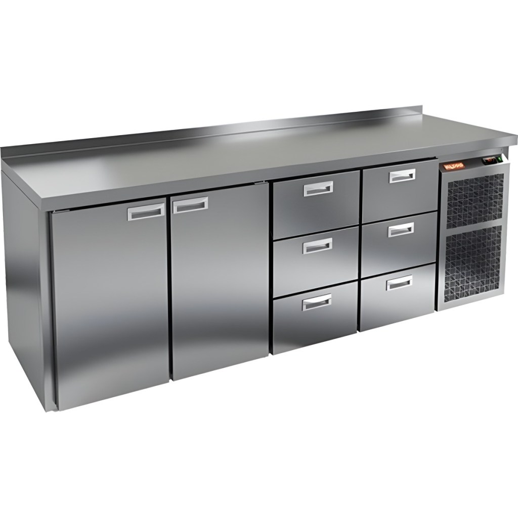 Каталог оборудования Холодильное оборудованиеСтолы охлаждаемыеСтолы холодильные среднетемпературныеСтол холодильный среднетемпературный HiCold BN 1133 BR2 TN Стол холодильный среднетемпературный HiCold BN 1133 BR2 TN Код товара: 062-319 Поделиться: WhatsAppTelegram СравнитьДобавить в КПВ избранное 0 275 031 ₽ В корзину 0 шт В наличииСамовывоз сегодня бесплатно Взять в кредит Купить в лизинг Получить консультацию в WhatsApp Описание Характеристики Отзывы 0 Стол холодильный среднетемпературный HiCold BN 1133 BR2 TN — это многофункциональное профессиональное оборудование, предназначенное для предприятий общественного питания и торговли. Он обеспечивает удобную поверхность для раскатки теста и подготовки продуктов, а также выполняет функцию охлаждаемого шкафа для кратковременного хранения скоропортящихся ингредиентов и напитков. Устройство оснащено удобной электронной панелью управления и выполнено из нержавеющей стали, что гарантирует долговечность и простоту в уходе. Комплектация: 2 полки размером 330×325 мм. Особенности модели: Надёжный компрессор от мирового производителя — стабильная и эффективная работа. Принудительная вентиляция — обеспечивает равномерное распределение холода во всём объёме камеры. Цельнозаливной корпус с теплоизоляцией 50 мм — сводит к минимуму потери холода, придаёт конструкции прочность. Автоматические дверные доводчики с фиксатором — для комфортного и безопасного использования. Магнитные уплотнители, которые легко заменить при необходимости — сохраняют герметичность. Регулируемые по высоте ножки — удобная установка на любой поверхности. Упрощённый доступ к агрегату — быстрое техническое обслуживание без лишних усилий. Толщина столешницы — 50 мм, высота борта — 50 мм — прочная и безопасная рабочая зона. Поддерживает работу при температуре окружающей среды от +12 до +37 °C. HiCold BN 1133 BR2 TN — это надёжный и функциональный холодильный стол, сочетающий в себе рабочую поверхность и охлаждаемое хранение. Он обеспечивает высокую производительность, удобство в эксплуатации и соответствует требованиям современной профессиональной кухни. Отличный выбор для кафе, ресторанов и пищевых производств.Изображение товара, представленного на фото, может отличаться от его фактического вида. Показать все Габаритные размеры2280×500×850 ммДиапазон рабочей температурыот -2 до +10 °CРасположение агрегатаБоковое Материал столешницыНержавеющая Тип столаС дверьми и ящиками Тип двериГлухая Объём530 лКоличество дверей2 штКоличество полок2 штКоличество ящиков6 штРазмер полки330×325 ммНапряжение220 ВМощность0,48 кВтТип охлажденияДинамический Тип оттайкиАвтоматическая СтолешницаС бортом Вес нетто145 кгВес брутто165 кгБрендHicoldВсе холодильные столы HicoldВсе нержавеющие холодильные столы Все холодильные столы с бортом Оставить отзыв Еще никто не оставил отзыв на этот товар Похожие товары Перейти в каталог Под заказ 79 911 ₽ Стол холодильный среднетемпературный HiCold GN 1/TN W Под заказ 104 947 ₽ Стол холодильный среднетемпературный Abat СХС-70 с бортом (дверь) С этим товаром покупают В наличии 96 390 ₽ Шкаф холодильный Полюс Carboma R560 В наличии 58 095 ₽ Витрина холодильная для ингредиентов HICOLD VRTU 1835 1/3 Ранее просмотрено В наличии 229 131 ₽ Стол холодильный среднетемпературный HiCold BN 1113 BR2 TN Под заказ 112 318 ₽ Откатная холодильная дверь Север СТ-ОХД 2000*1860/80