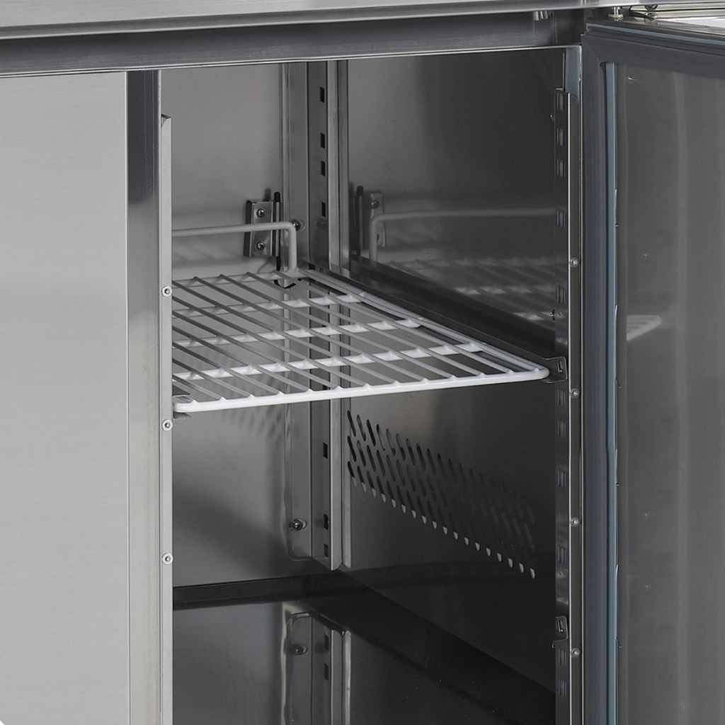 Каталог оборудования Холодильное оборудованиеСтолы охлаждаемыеСтолы морозильные низкотемпературныеСтол морозильный TEFCOLD CF7310 Стол морозильный TEFCOLD CF7310 Код товара: 010-257 Поделиться: WhatsAppTelegram СравнитьДобавить в КПВ избранное 0 218 857 ₽ В корзину 0 шт В наличииСамовывоз сегодня бесплатно Взять в кредит Купить в лизинг Получить консультацию в WhatsApp Описание Характеристики Отзывы 0 Стол морозильный TEFCOLD CF7310 — профессиональное оборудование для раскатки теста, обработки, заморозки и долговременного хранения продуктов, полуфабрикатов, напитков и мороженого на предприятиях общественного питания и торговли. Корпус и внутренняя отделка выполнены из нержавеющей стали AISI 304, что обеспечивает долговечность, гигиеничность и лёгкость ухода. Особенности модели: Динамическое охлаждение — равномерное распределение холода по всему объёму Автоматическое размораживание — поддержание стабильной работы без образования наледи Электронный термостат и градусник — точное управление температурой Хладагент R404a, подзарядка — 0,09 кг Съёмная столешница с бортом — удобство работы и уборки Самозакрывающиеся двери 3 полки GN1/1 (530 × 325 мм) — эффективная организация внутреннего пространства Регулируемые по высоте ножки — устойчивость на любой поверхности Климатический класс 4 — работа при температуре до +30 °C Полезный объём: 402 л Мощность: 0,7 кВт Энергопотребление: 10,15 кВт/сутки Внутренние размеры: 1337 × 530 × 589 мм Уровень шума: 42 дБ TEFCOLD CF7310 — надёжный и функциональный морозильный стол для профессиональных кухонь. Он сочетает рабочую поверхность для раскатки теста с вместительной морозильной камерой, обеспечивая удобство работы, долговременное хранение продуктов и стабильный температурный режим.Изображение товара, представленного на фото, может отличаться от его фактического вида. Показать все Габаритные размеры1795×700×980 ммДиапазон рабочей температурыот -20 до -10 °CРасположение агрегатаБоковое Материал столешницыНержавеющая Тип столаС дверьми Тип двериГлухая Общий объем417 лПолезный объем402 лКоличество дверей3 штРазмер полки530×325 ммНапряжение230 ВРасход электроэнергии в сутки6,95 кВт/сутТип охлажденияДинамический Тип оттайкиАвтоматическая Климатический класс4 ХладагентR404a СтолешницаС бортом Уровень шума42 дБГабариты в упаковке1830×750×1010 ммВес нетто152 кгВес брутто162 кгБрендTefcold Оставить отзыв Еще никто не оставил отзыв на этот товар Похожие товары Перейти в каталог Под заказ 125 817 ₽ Стол морозильный HURAKAN HKN-GN3BT Под заказ 166 404 ₽ Стол морозильный Abat СХН-70-02 без борта (дверь, дверь, дверь) С этим товаром покупают В наличии 201 690 ₽ Шкаф морозильный Полюс Carboma F1400