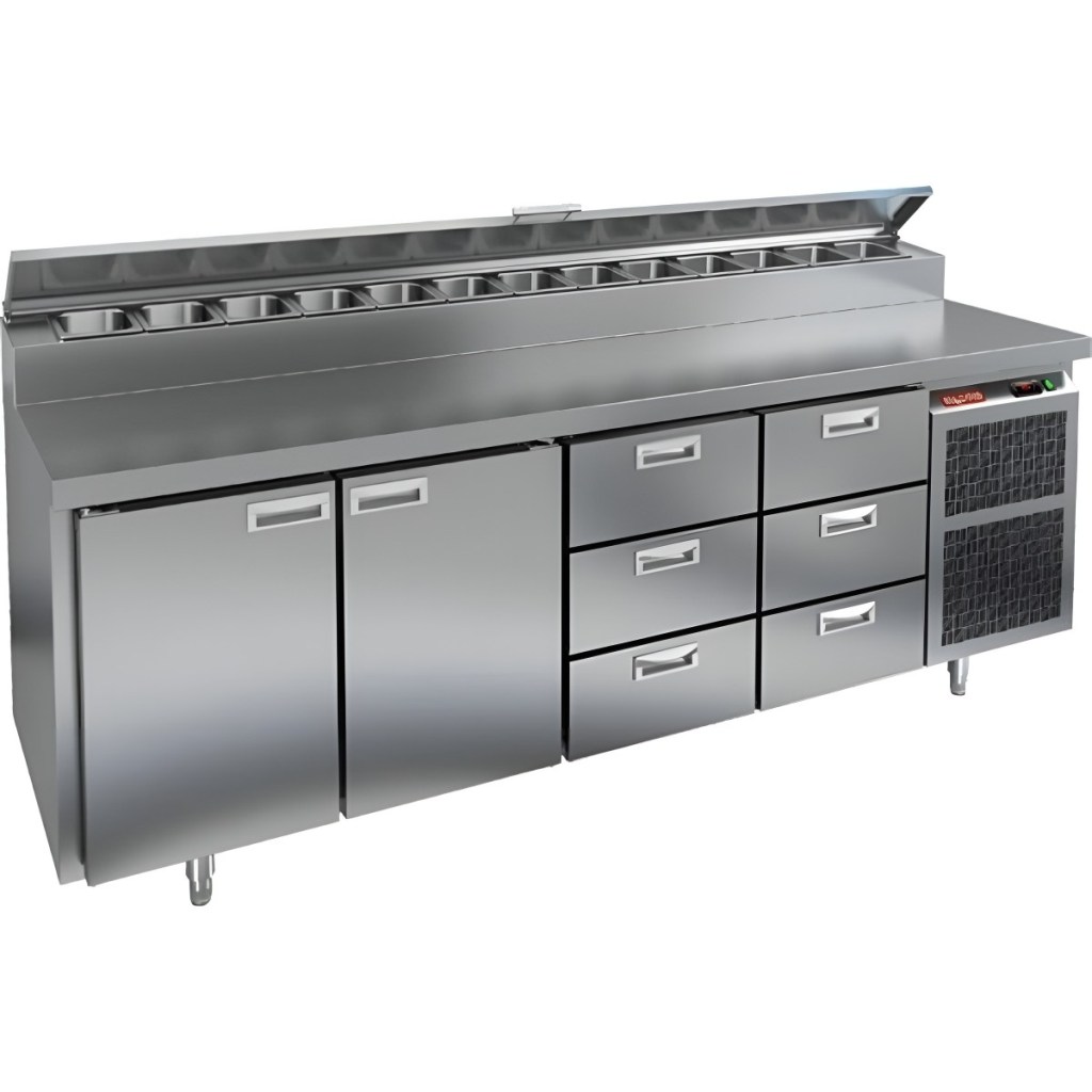 Каталог оборудования Холодильное оборудованиеСтолы охлаждаемыеСтолы холодильные для пиццыСтол холодильный для пиццы HiCold PZ2-1133GN (1/6) Стол холодильный для пиццы HiCold PZ2-1133GN (1/6) Код товара: 064-759 Поделиться: WhatsAppTelegram СравнитьДобавить в КПВ избранное 0 342 442 ₽ В корзину 0 шт Под заказСамовывоз сегодня бесплатно Взять в кредит Купить в лизинг Получить консультацию в WhatsApp Описание Характеристики Отзывы 0 Стол холодильный для пиццы HiCold PZ2-1133GN (1/6) предназначен для кухонь и предприятий общественного питания. Он используется для раскатки теста, подготовки ингредиентов для пиццы, салатов и других блюд, а также для охлаждения и кратковременного хранения скоропортящихся продуктов. Модель совмещает нержавеющую рабочую поверхность и охлаждаемый отсек с 2 дверьми и 6 ящиками, обеспечивая удобный доступ к ингредиентам и эффективное хранение. Особенности: Динамическая система охлаждения для равномерного поддержания температуры Автоматическая оттайка для удобного обслуживания Электронная панель управления для точной настройки параметров Вместительная внутренняя полка формата GN 1/1 (размер 530×325 мм) 2 двери и 6 вместительных ящика для хранения ингредиентов Автоматические доводчики дверей с фиксатором открытого положения Легкозаменяемые магнитные уплотнители для герметичности Открытая агрегатная часть для легкого доступа к компонентам Регулируемые по высоте ножки для устойчивости Нержавеющая столешница глубиной 486 мм и толщиной 50 мм — устойчива к коррозии, легко моется и гигиенична Толщина теплоизоляции: 50 мм Максимальная глубина гастроемкостей: 100 мм Вместимость салат-бара: 13 гастроемкости Стол холодильный HiCold PZ2-1133GN (1/6) — это надежный и функциональный стол для пиццы. Он объединяет рабочую поверхность и охлаждаемый отсек, упрощает хранение и подготовку ингредиентов, обеспечивает удобство работы повара и соответствует стандартам профессиональной кухни. Изображение товара, представленного на фото, может отличаться от его фактического вида. Показать все Габаритные размеры2280×700×1000 ммДиапазон рабочей температурыот +2 до +10 °CРасположение агрегатаБоковое Материал столешницыНержавеющая Тип столаС дверьми и ящиками Тип двериГлухая Объём660 лТип гастроемкостейGN 1/6 Количество дверей2 штКоличество ящиков6 штРазмер полки530×325 ммНапряжение220 ВМощность0,5 кВтТип охлажденияДинамическое Тип оттайкиАвтоматическая Габариты в упаковке2420×850×1080 ммВес нетто208 кгВес брутто240 кгБрендHicoldВсе холодильные столы для пиццы HicoldВсе нержавеющие холодильные столы для пиццы Оставить отзыв Еще никто не оставил отзыв на этот товар Ранее просмотрено Под заказ 306 171 ₽ Стол холодильный для пиццы HiCold PZ2-222GN (1/6) Под заказ 209 062 ₽ Стол холодильный для пиццы HiCold PZE1-111GN (1/3) М Под заказ 250 642 ₽ Стол холодильный для пиццы HiCold PZ1-1111GN (1/3)