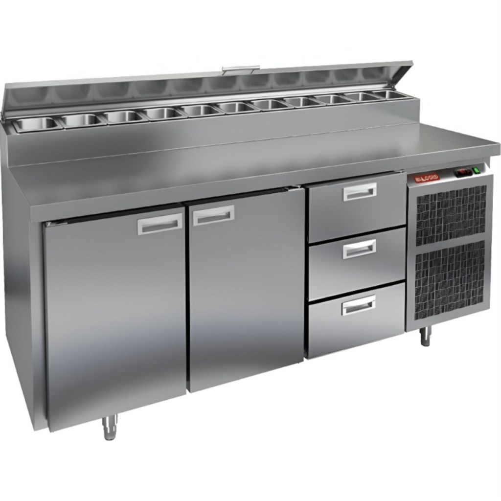 Каталог оборудования Холодильное оборудованиеСтолы охлаждаемыеСтолы холодильные для пиццыСтол холодильный для пиццы HiCold PZ2-113GN (1/6) Стол холодильный для пиццы HiCold PZ2-113GN (1/6) Код товара: 064-761 Поделиться: WhatsAppTelegram СравнитьДобавить в КПВ избранное 0 260 272 ₽ В корзину 0 шт Под заказСамовывоз сегодня бесплатно Взять в кредит Купить в лизинг Получить консультацию в WhatsApp Описание Характеристики Отзывы 0 Инструкции 2 Стол холодильный для пиццы HiCold PZ2-113GN (1/6) предназначен для кухонь и предприятий общественного питания. Он используется для раскатки теста, подготовки ингредиентов для пиццы, салатов и других блюд, а также для охлаждения и кратковременного хранения скоропортящихся продуктов. Модель совмещает нержавеющую рабочую поверхность и охлаждаемый отсек с 2 дверьми и 3 ящиками, обеспечивая удобный доступ к ингредиентам и эффективное хранение. Особенности: Динамическая система охлаждения для равномерного поддержания температуры Автоматическая оттайка для удобного обслуживания Электронная панель управления для точной настройки параметров Вместительная внутренняя полка формата GN 1/1 (размер 530×325 мм) 2 двери и 3 вместительных ящика для хранения ингредиентов Автоматические доводчики дверей с фиксатором открытого положения Легкозаменяемые магнитные уплотнители для герметичности Открытая агрегатная часть для легкого доступа к компонентам Регулируемые по высоте ножки для устойчивости Нержавеющая столешница глубиной 486 мм и толщиной 50 мм — устойчива к коррозии, легко моется и гигиенична Толщина теплоизоляции: 50 мм Максимальная глубина гастроемкостей: 100 мм Вместимость салат-бара: 11 гастроемкости Стол холодильный HiCold PZ2-113GN (1/6) — это надежный и функциональный стол для пиццы. Он объединяет рабочую поверхность и охлаждаемый отсек, упрощает хранение и подготовку ингредиентов, обеспечивает удобство работы повара и соответствует стандартам профессиональной кухни. Изображение товара, представленного на фото, может отличаться от его фактического вида. Показать все Габаритные размеры1835×700×1000 ммДиапазон рабочей температурыот +2 до +10 °CРасположение агрегатаБоковое Материал столешницыНержавеющая Тип столаС дверьми и ящиками Тип двериГлухая Объём505 лТип гастроемкостейGN 1/6 Количество дверей2 штКоличество ящиков3 штРазмер полки530×325 ммНапряжение220 ВМощность0,46 кВтТип охлажденияДинамическое Тип оттайкиАвтоматическая Вес нетто172 кгВес брутто210 кгБрендHicoldВсе холодильные столы для пиццы HicoldВсе нержавеющие холодильные столы для пиццы Оставить отзыв Еще никто не оставил отзыв на этот товар Паспорт на HICOLD PZ2-113GN.pdfДекларация о соответствии.pdf Ранее просмотрено Под заказ 147 321 ₽ Стол холодильный для пиццы HiCold PZ1-1GN (1/3) Под заказ 217 161 ₽ Стол холодильный для пиццы HiCold PZE1-112GN (1/3) Под заказ 245 242 ₽ Стол холодильный для пиццы HiCold PZ1-22GN (1/3) Под заказ 214 642 ₽ Стол холодильный для пиццы HiCold PZ1-12GN (1/3)