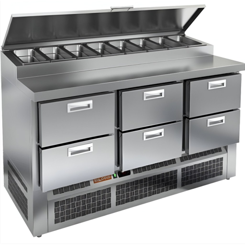 Каталог оборудования Холодильное оборудованиеСтолы охлаждаемыеСтолы холодильные для пиццыСтол холодильный для пиццы HiCold PZE1-222GN (1/3) Стол холодильный для пиццы HiCold PZE1-222GN (1/3) Код товара: 064-727 Поделиться: WhatsAppTelegram СравнитьДобавить в КПВ избранное 0 278 361 ₽ В корзину 0 шт Под заказСамовывоз сегодня бесплатно Взять в кредит Купить в лизинг Получить консультацию в WhatsApp Описание Характеристики Отзывы 0 Стол холодильный для пиццы HiCold PZE1-222GN (1/3) — профессиональное оборудование для предприятий общественного питания и торговли. Он предназначен для раскатки теста и подготовки ингредиентов, используемых при приготовлении пиццы, салатов и других блюд, а также для охлаждения и кратковременного хранения скоропортящихся продуктов и напитков. Совмещение рабочей поверхности и охлаждаемого блока значительно упрощает работу повара — все необходимые компоненты находятся под рукой. Корпус и столешница выполнены из нержавеющей стали, обеспечивая долговечность, устойчивость к повреждениям и лёгкость ухода. Основные особенности: Динамическая система охлаждения — равномерное распределение холода по всему объёму Автоматическая оттайка — стабильная работа без образования наледи Электронная панель управления — точная настройка температуры 6 выдвижных ящика — удобная организация внутреннего пространства Автоматические доводчики ящиков — комфорт при работе Легкозаменяемые магнитные уплотнители — поддержание герметичности Открытая агрегатная часть — лёгкий доступ к техническим элементам Регулируемые по высоте ножки — установка на неровных поверхностях Максимальная глубина гастроёмкостей: 100 мм Глубина рабочей поверхности: 324 мм Толщина столешницы: 50 мм Толщина теплоизоляции: 50 мм Вместимость салат-бара: до 8 гастроёмкостей HiCold PZE1-222GN (1/3) с четырьмя выдвижными ящиками — надёжный и функциональный холодильный стол для пиццы и салатов. Продуманная организация хранения и удобство эксплуатации обеспечивают быстрый доступ к ингредиентам и повышают производительность на профессиональной кухне.Изображение товара, представленного на фото, может отличаться от его фактического вида. Показать все Габаритные размеры1485×700×990 ммДиапазон рабочей температурыот +2 до +10 °CРасположение агрегатаНижнее Материал столешницыНержавеющая Тип столаС ящиками Объём375 лТип гастроемкостейGN 1/3 Количество ящиков6 штНапряжение220 ВМощность0,22 кВтТип охлажденияДинамическое Тип оттайкиАвтоматическая Габариты в упаковке1680×840×1170 ммВес нетто115 кгВес брутто153 кгБрендHicoldВсе холодильные столы для пиццы HicoldВсе нержавеющие холодильные столы для пиццы Оставить отзыв Еще никто не оставил отзыв на этот товар Ранее просмотрено Под заказ 247 761 ₽ Стол холодильный для пиццы HiCold PZE2-221/GN (1/6H) Под заказ 242 721 ₽ Стол холодильный для пиццы HiCold PZE2-1111/GN (1/6) М Под заказ 273 142 ₽ Стол холодильный для пиццы HiCold PZ1-1111GN (1/3) M