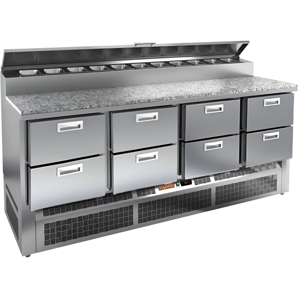 Стол холодильный для пиццы HiCold PZE2-2222/GN (1/6H) предназначен для использования на предприятиях общественного питания и торговли. Он совмещает охлаждаемый объём и удобную рабочую поверхность, обеспечивая повару быстрый доступ к ингредиентам и комфорт при подготовке блюд — от пиццы и салатов до закусок и десертов.