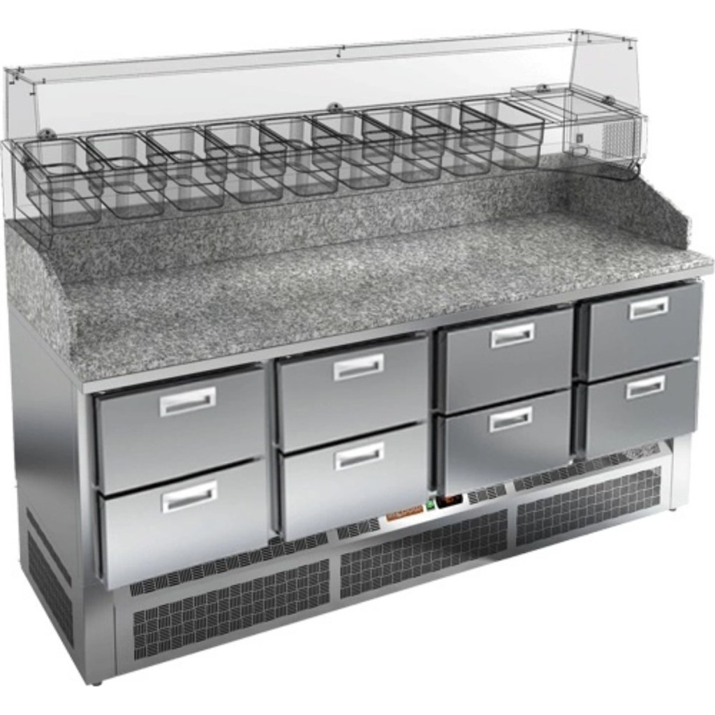 Каталог оборудования Холодильное оборудованиеСтолы охлаждаемыеСтолы холодильные для пиццыСтол холодильный для пиццы HiCold PZE3-222/GN камень Стол холодильный для пиццы HiCold PZE3-222/GN камень Код товара: 064-994 Поделиться: WhatsAppTelegram СравнитьДобавить в КПВ избранное 0 343 342 ₽ В корзину 0 шт Под заказСамовывоз сегодня бесплатно Взять в кредит Купить в лизинг Получить консультацию в WhatsApp Описание Характеристики Отзывы 0 Стол холодильный для пиццы HiCold PZE3-222/GN камень предназначен для использования в пиццериях, кафе, магазинах и ресторанах. Он идеально подходит для раскатки теста, подготовки ингредиентов для пиццы и кратковременного хранения скоропортящихся продуктов. Витрина приобретается отдельно. Особенности модели: Корпус: нержавеющая сталь — прочный, гигиеничный и долговечный Столешница: гранит — устойчива к царапинам, ударам и температурным нагрузкам Охлаждение: динамическое для равномерного поддержания температуры Оттайка: автоматическая — удобство и экономия времени Панель управления: электронная — точная настройка температуры Ножки: регулируемые по высоте — устойчивость на неровной поверхности Ящики: 6 выдвижных ящика — удобное хранение ингредиентов Уплотнители: легкозаменяемые магнитные — герметичность и простота обслуживания Толщина теплоизоляции: 50 мм — сохранение холода и энергоэффективность Рабочая поверхность: глубина 680 мм — удобство работы HiCold PZE3-222/GN камень — надёжный и функциональный холодильный стол с гранитной столешницей, который сочетает прочность, удобство в работе и эффективное охлаждение продуктов. Он станет универсальным решением для профессиональной кухни, где важны скорость, организация и сохранение свежести ингредиентов. Изображение товара, представленного на фото, может отличаться от его фактического вида. Показать все Габаритные размеры1485×700×1050 ммДиапазон рабочей температурыот +2 до +10 °CРасположение агрегатаНижнее Материал столешницыГранитная Тип столаС ящиками Объём375 лКоличество ящиков6 штРазмер полки530×325 ммНапряжение220 ВМощность0,2 кВтТип охлажденияДинамическое Тип оттайкиАвтоматическая Габариты в упаковке1700×850×1280 ммВес нетто227 кгВес брутто280 кгБрендHicoldВсе холодильные столы для пиццы HicoldВсе нержавеющие холодильные столы для пиццы Оставить отзыв Еще никто не оставил отзыв на этот товар Ранее просмотрено Под заказ 191 782 ₽ Стол холодильный для пиццы HiCold PZE2-111/GN (1/6H) З Под заказ 188 722 ₽ Стол холодильный для пиццы HiCold PZ2-11/GN (1/6) З Под заказ 337 492 ₽ Стол холодильный для пиццы HiCold PZE3-222/SN камень Под заказ 391 221 ₽ Стол холодильный для пиццы HiCold PZ3-2321/GN камень