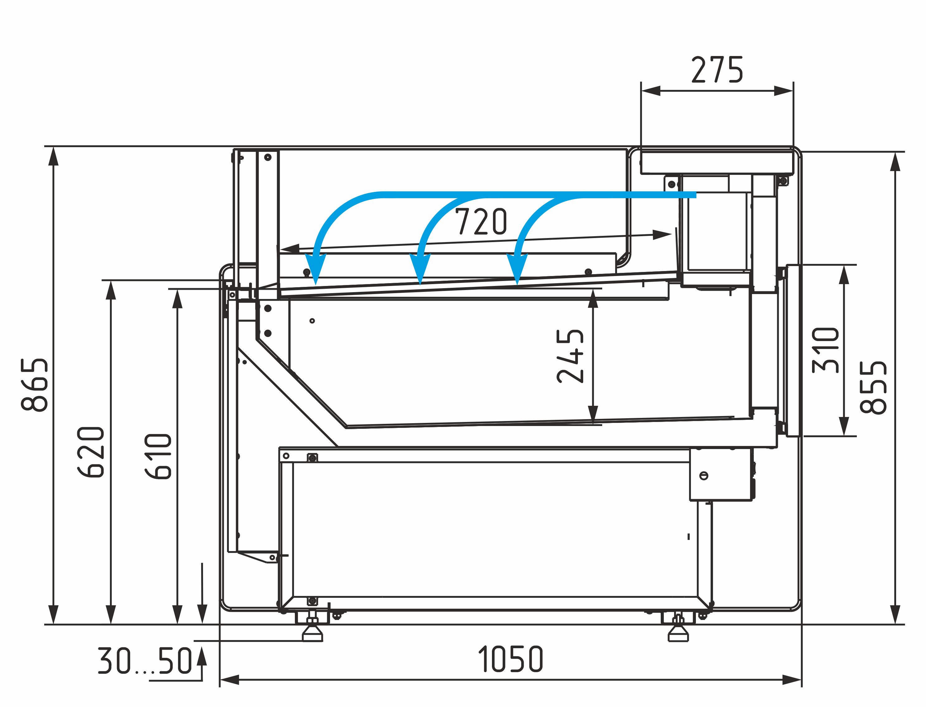 Экспозиционная поверхность и столешница выполнены из шлифованной нержавеющей стали, а декоративная фронтальная панель — из МДФ.