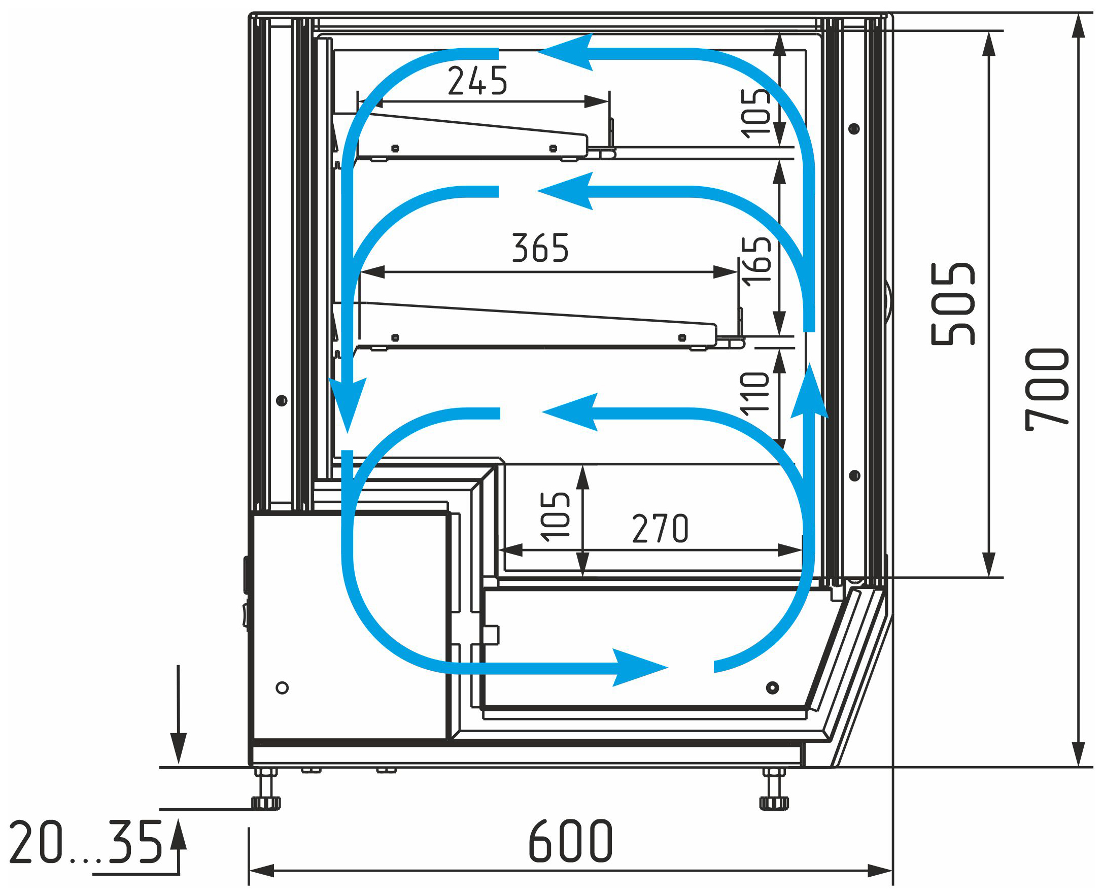 Каталог оборудования Холодильное оборудованиеВитрины настольныеВитрина холодильная настольная Carboma AC59 VM 0,7-1 (слайдер) (0430) Витрина холодильная настольная Carboma AC59 VM 0,7-1 (слайдер) (0430) Код товара: 063-685 Поделиться: WhatsAppTelegram СравнитьДобавить в КПВ избранное 0 106 741 ₽ В корзину 0 шт Под заказСамовывоз сегодня бесплатно Взять в кредит Купить в лизинг Получить консультацию в WhatsApp Описание Характеристики Отзывы 0 Инструкции 2 Витрина холодильная настольная Carboma AC59 VM 0,7-1 (слайдер) (0430) — это универсальная охлаждаемая витрина для демонстрации и кратковременного хранения кондитерских изделий, десертов, салатов и напитков. Идеально подходит для небольших кафе, баров и заведений общественного питания. Модель оснащена закалёнными боковыми стеклопакетами, раздвижными фронтальными и задними дверцами, а также двумя охлаждаемыми полками-решётками с ограничителями. Может устанавливаться на столешницу или встраиваться в барную стойку. Корпус выполнен из стали с ППУ-теплоизоляцией, а рабочая поверхность — из нержавеющей стали. Ключевые особенности: Динамическая система охлаждения — равномерное распределение температуры Компрессор европейского производства — высокая надёжность Электронный блок управления Carel — точный контроль температурного режима Выпариватель конденсата — исключает необходимость ручного слива Возможность установки полок под углом 5° — улучшенная презентация Фронтальные и задние раздвижные дверцы — удобный доступ с обеих сторон Боковая LED-подсветка — подчёркивает структуру десертов и изделий Современный кубический дизайн — стильный внешний вид Регулируемые ножки-опоры — устойчивость на любых поверхностях Настольное или встраиваемое размещение — гибкость установки Стабильный температурный режим — для безопасного хранения продуктов Глубина нижней зоны выкладки: 270 мм Глубина полок: 365 мм (верхняя) / 245 мм (нижняя) Длина нижнего поддона: 666 мм Максимальная высота выкладки продуктов: нижний поддон — 150 мм, полки — 100 мм Температура окружающей среды: от 12 до 25 °C Относительная влажность воздуха: до 60% Carboma AC59 VM 0,7-1 (слайдер) (0430) — это надёжная и эргономичная охлаждаемая витрина с удобным доступом с обеих сторон, которая обеспечит качественную демонстрацию и сохранность продукции в кафе, барах и точках продаж.Изображение товара, представленного на фото, может отличаться от его фактического вида. Показать все Габаритные размеры700×600×735 ммДиапазон рабочей температурыот +4 до +10 °CДлина700 ммГлубина600 ммВысота735 ммРазмещениеГоризонтальная Площадь выкладки0,56 м²Полезный объем витрины0,06 м³Тип охлажденияДинамическое Климатический класс3 ХладагентR290, R600a Напряжение220 ВЭнергопотребление в сутки4 кВтКоличество полок2 штГабариты в упаковке850×750×890 ммВес нетто78 кгВес брутто86 кгБрендПолюсВсе витрины настольные CarbomaВсе холодильные настольные витриныВсе стеклянные настольные витрины Оставить отзыв Еще никто не оставил отзыв на этот товар Брошюра на Carboma AMRA AC59 VM.pdfСхема Carboma AMRA AC59 VM 0,7-1 Slider.jpg Похожие товары Перейти в каталог Под заказ 196 100 ₽ Витрина кондитерская Carboma KC70 VM 0,9-2 STANDARD Паттерн открытая (0105 Венге) Под заказ 187 800 ₽ Витрина кондитерская Carboma D4 VM 800-1 (R800C Carboma) (INOX) 2 дверцы, полки‑решётки Под заказ 168 900 ₽ Витрина кондитерская Carboma K70 ВХСв-У1д (K70 VM-3 LIGHT FLANDRIA) угловая Под заказ 269 100 ₽ Витрина кондитерская Carboma KC78-130 VV 1,2-2 (открытая) (9005